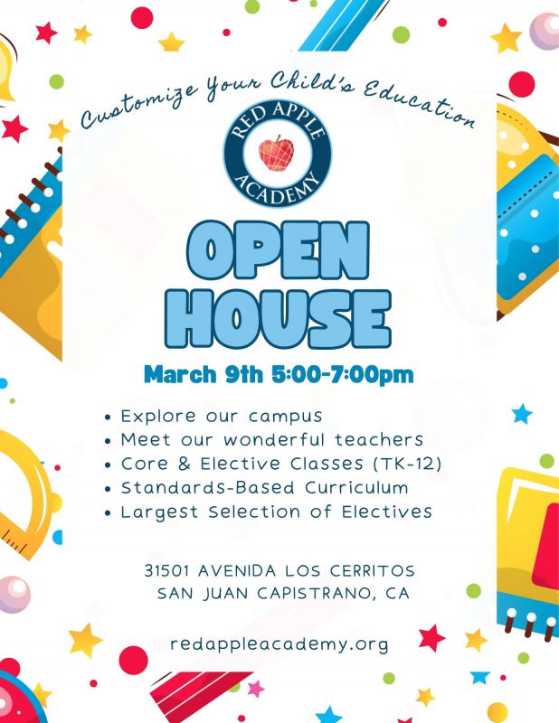 Location: Red Apple Academy, 31501 Avenida los Cerritos, San Juan Capistrano, CA
